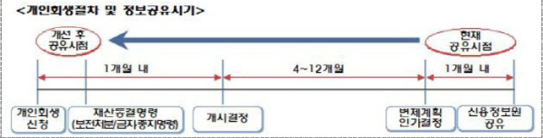 이에 따라 금융위는 개인회생정보 공유 시점을 개인회생 신청 직후인 채무자 재산 동결명령시점(통상 1주일 이내)으로 앞당겨 조정하기로 했다.