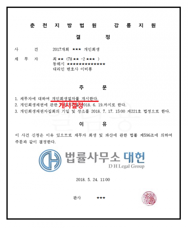 개시결정 | 춘천지방법원