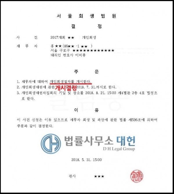개시결정 | 서울회생법원