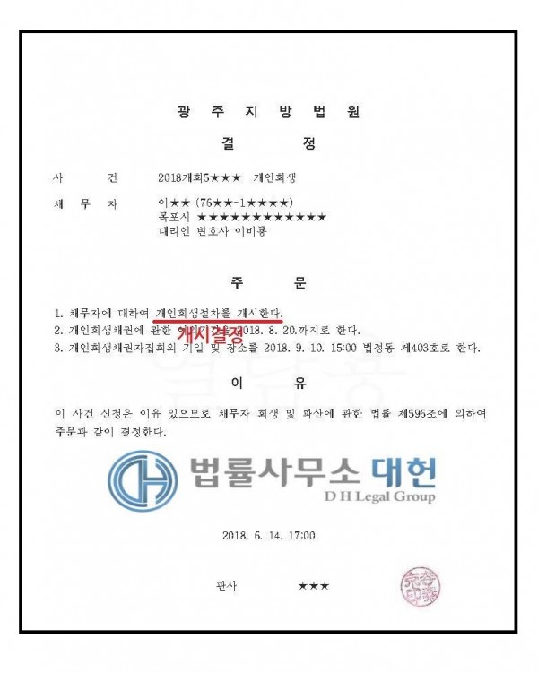 개시결정 | 광주지방법원