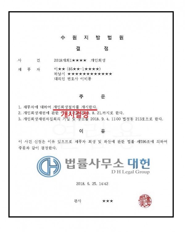 개시결정 | 수원지방법원