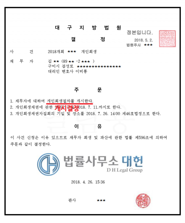 개시결정 | 대구지방법원