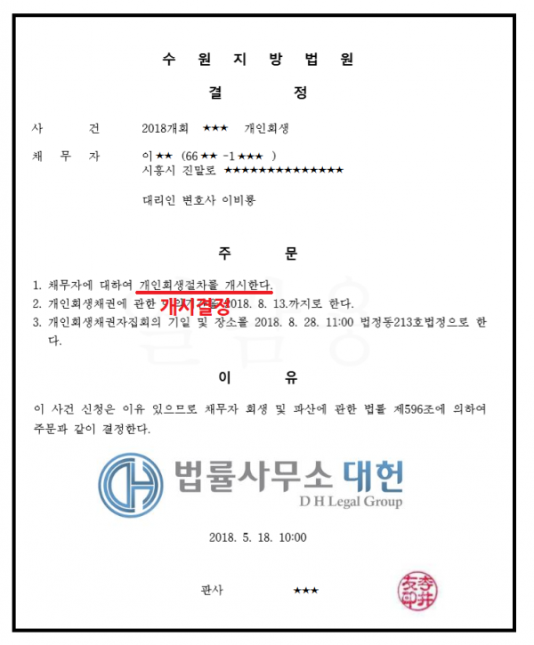 개시결정 | 수원지방법원