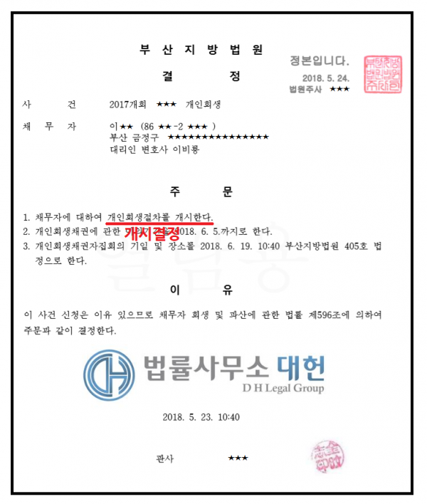 개시결정 | 부산지방법원