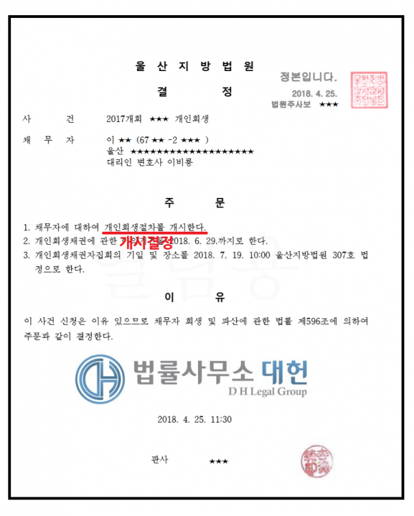 개시결정 | 울산지방법원