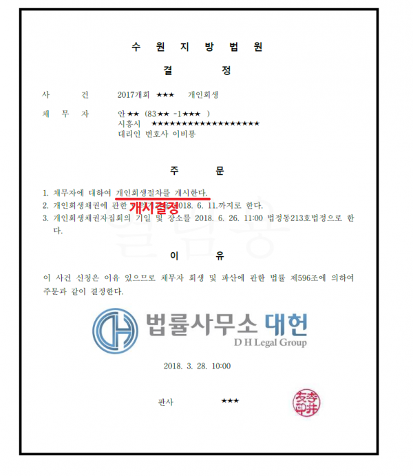 개시결정 | 수원지방법원