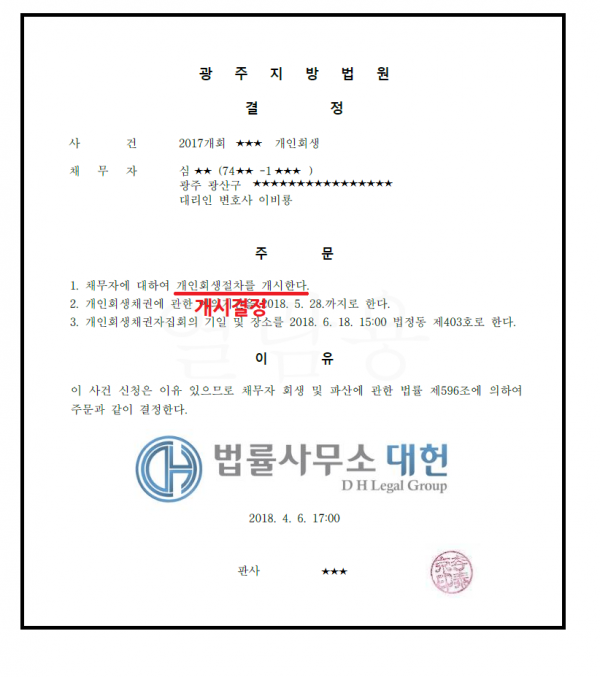 개시결정 | 광주지방법원