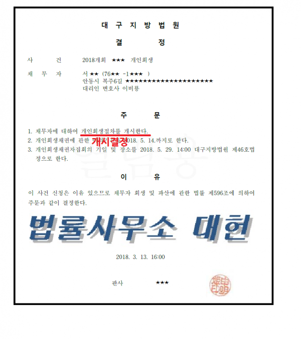 개시결정 | 대구지방법원