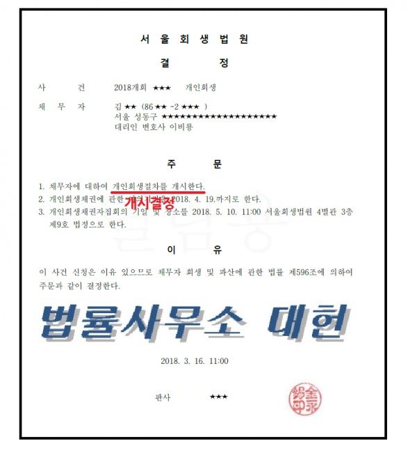 개시결정 | 서울회생법원