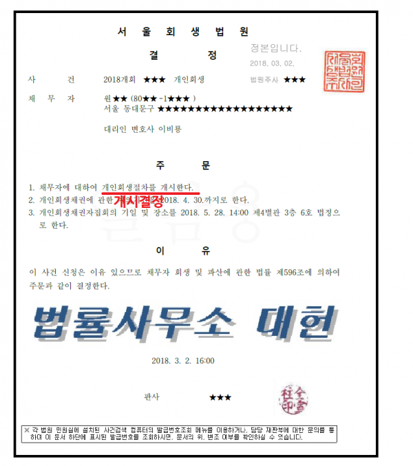 개시결정 | 서울회생법원