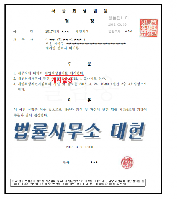 개시결정 | 서울회생법원