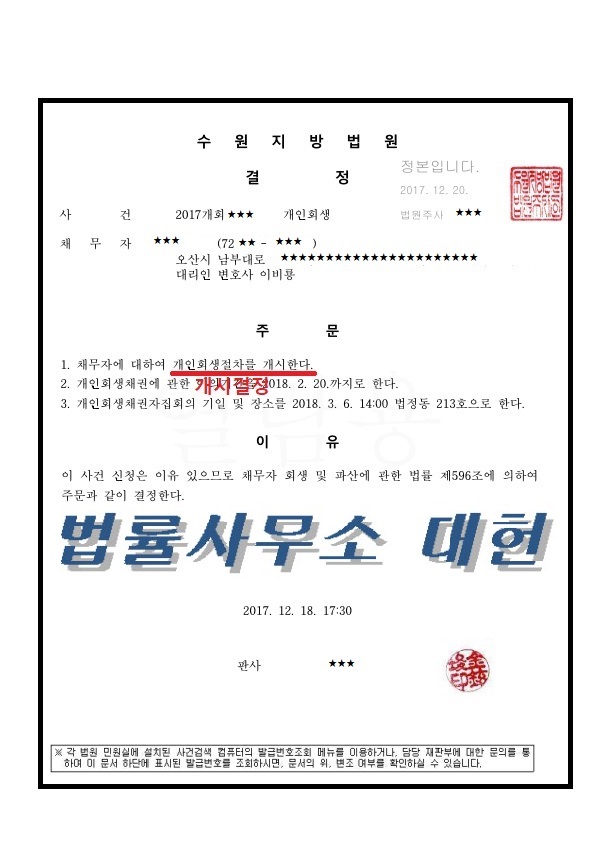 개시결정 | 수원지방법원
