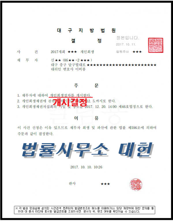 개시결정 | 대구지방법원