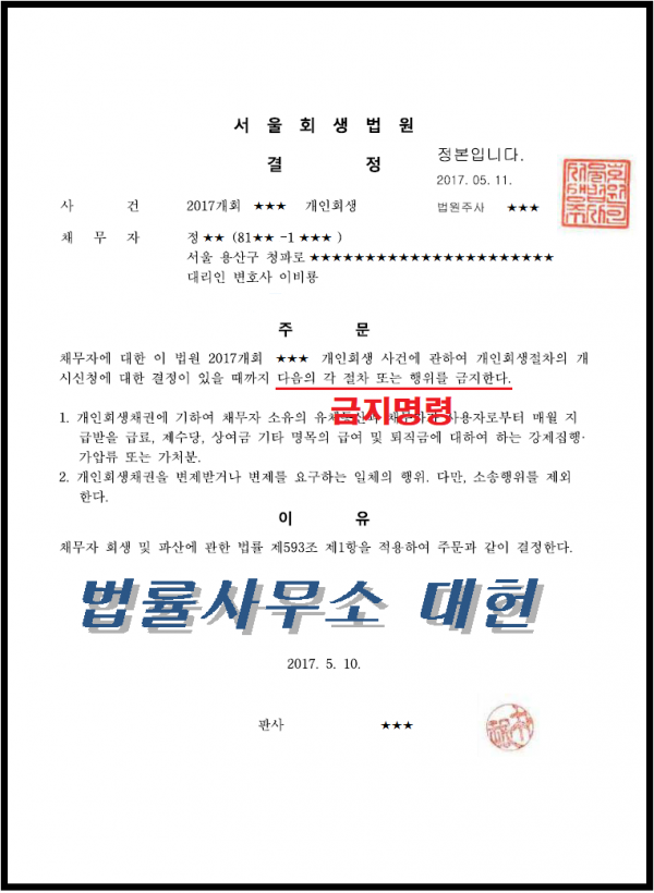 금지결정 | 서울회생법원