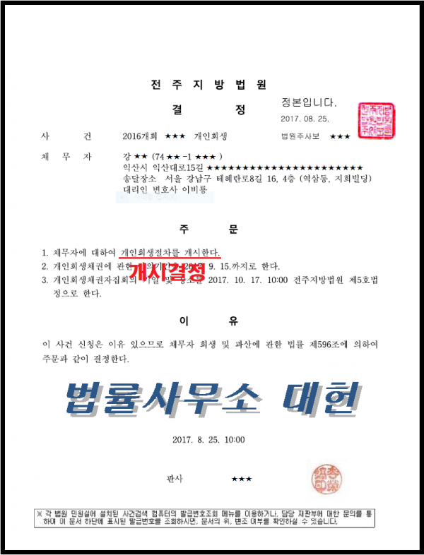 개시결정 | 전주지방법원