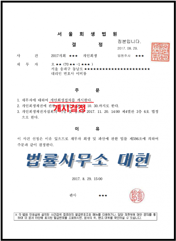 개시결정 | 서울회생법원