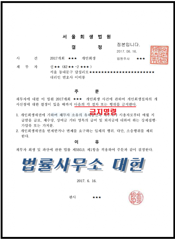 금지결정 | 서울회생법원