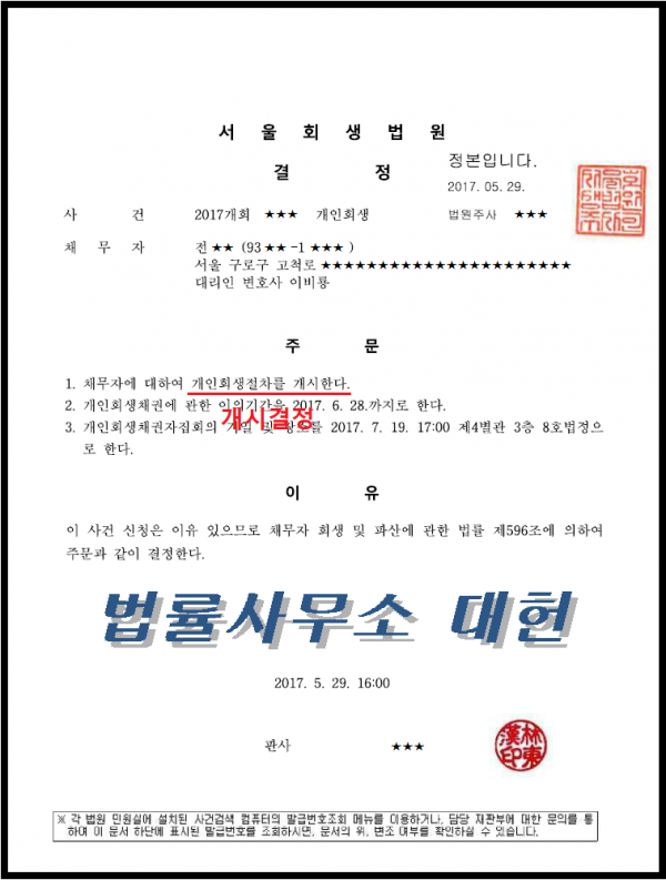 개시결정 | 서울회생법원