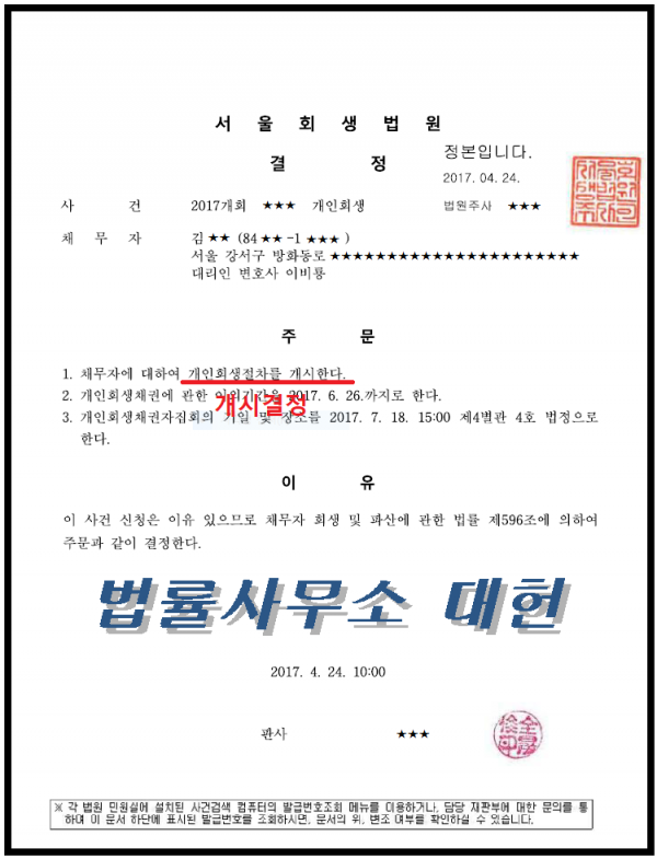 개시결정 | 서울회생법원